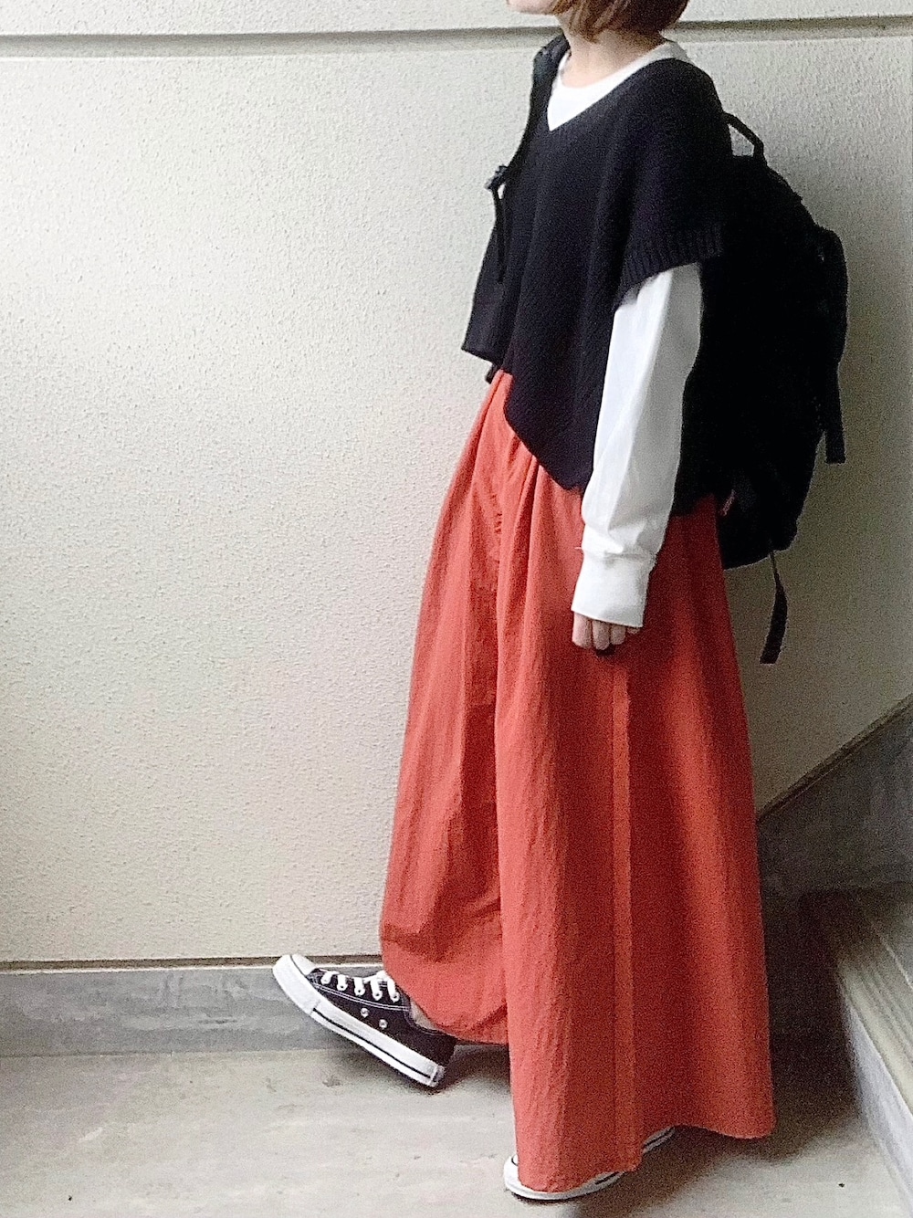 見てくださって、ありがとうございます🦔 モノトーンにオレンジ🍊 ITEMS URBANRESEARCH ☞ショートニットベストロングTシャツセット GRAMICCI 【Lee×GRAMICCI(グラミチ)】ロングスカート いつも、ありがとうございます🦔 恐縮です🙇🏻♂️🍊