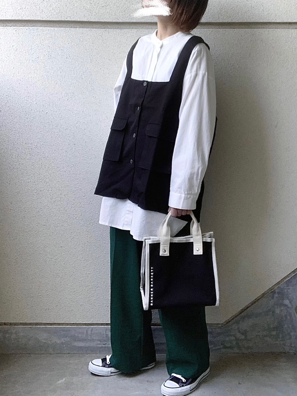 あやたのベスト「幅広く大活躍!ワークベスト」を使ったコーディネート