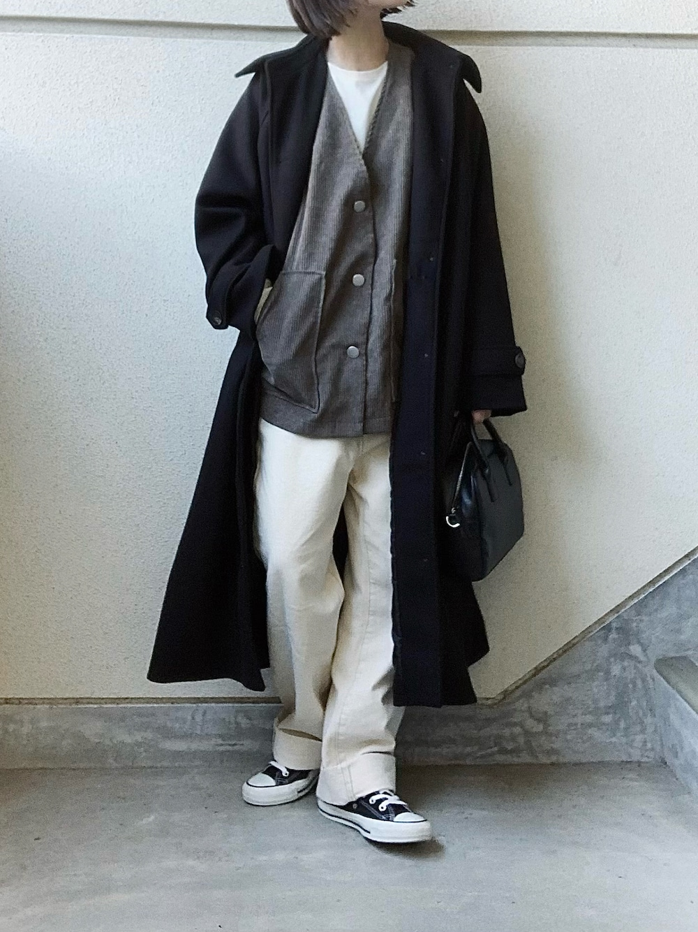 あやたのステンカラーコート「フェイクウールステンカラーコート」を使ったコーディネート