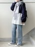 あやたのニット/セーター「ブラウスコンビショートニットプルオーバー」を使ったコーディネート