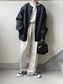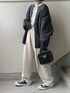 あやたのカーディガン/ボレロ「【Like Us】クルーネック/ラウンドネックダブルリブハイゲージ捲縮ニットルーズカーディガン」を使ったコーディネート