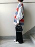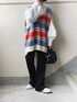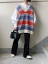 あやたのベスト「マルチボーダーニットベスト」を使ったコーディネート