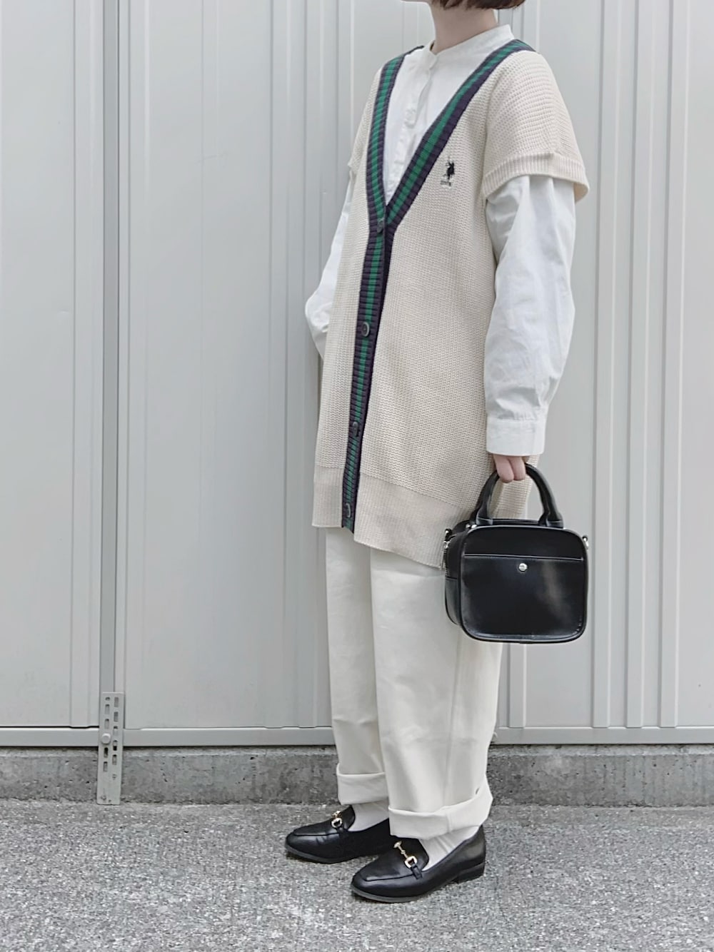 あやたのベスト「U.S. POLO ASSN./ユーエスポロアッスン 別注 ロゴ刺繍 ボタンチルデンニットベスト」を使ったコーディネート