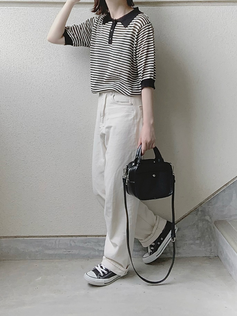 あやたのポロシャツ「【forksy.】半そでポロニットプルオーバー」を使ったコーディネート