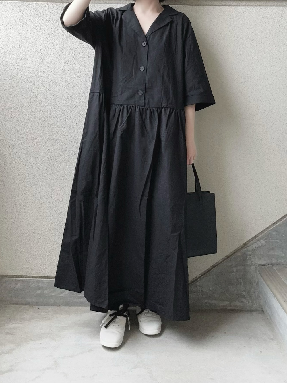 あやたのワンピース「オープンカラーリボンロングワンピース」を使ったコーディネート