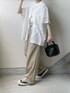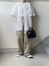 あやたのシャツ/ブラウス「幾何学レースオーバーサイズオープンカラー半袖シャツ」を使ったコーディネート