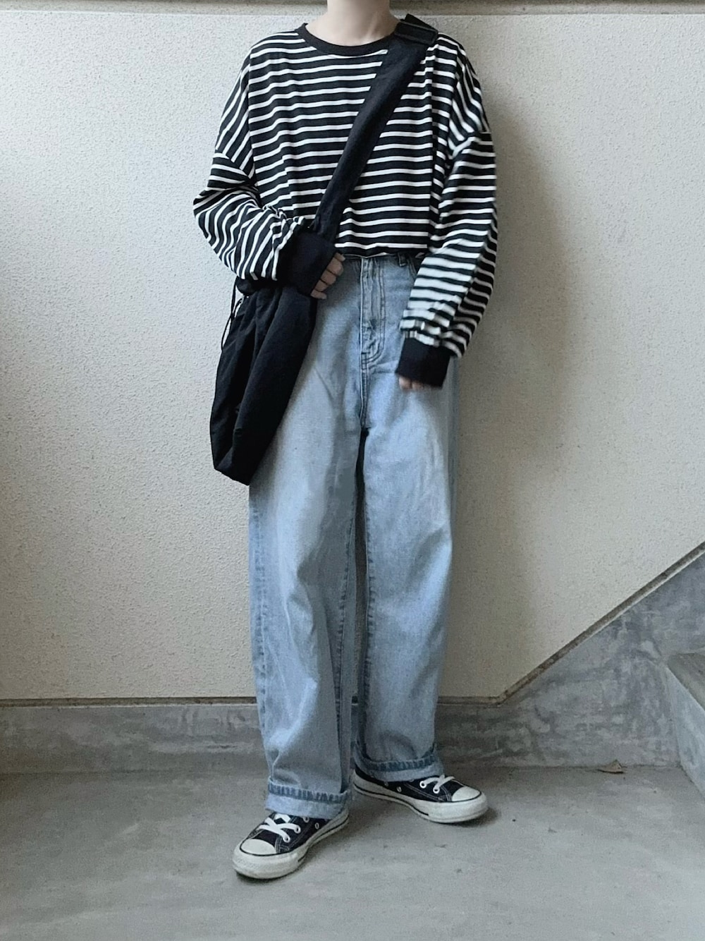 あやたのTシャツ/カットソー「【累計販売99,351枚突破!】ゆったり体型カバー!ボーダー&無地オーバーサイズプルオーバー」を使ったコーディネート