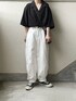 あやたのシャツ/ブラウス「ビッグシルエット 半袖オープンカラーシャツ ユニセックス」を使ったコーディネート