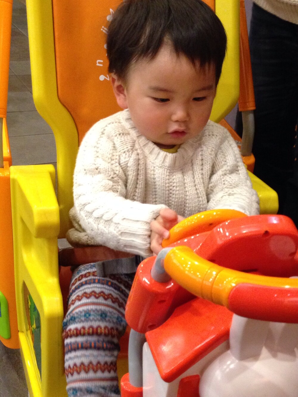 ホワイト系のニット/セーターを着用したキッズの冬コーディネートの1枚目の写真