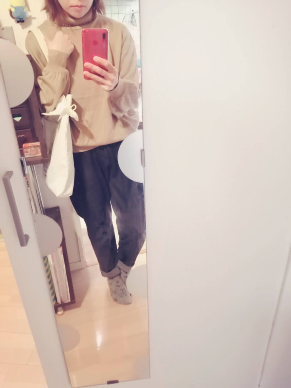 おはようございます☺️✨ 今日は、私コーデ😉👌✨ . earthの、ブラウンのニット(ハイネック) に、デニムを合わせました☺️🧡 濃い色のデニムって、 冬場にめちゃ活躍します😉✨ . やっぱり、秋、冬は ブラウンが着たくなる。。。🥺✨