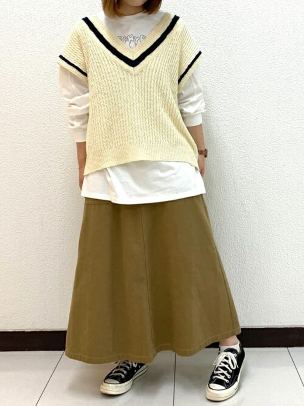 DOUBLE NAME_officialのニット/セーター「【merモデルまるちゃん着用】ライン入りニットベスト」を使ったコーディネート