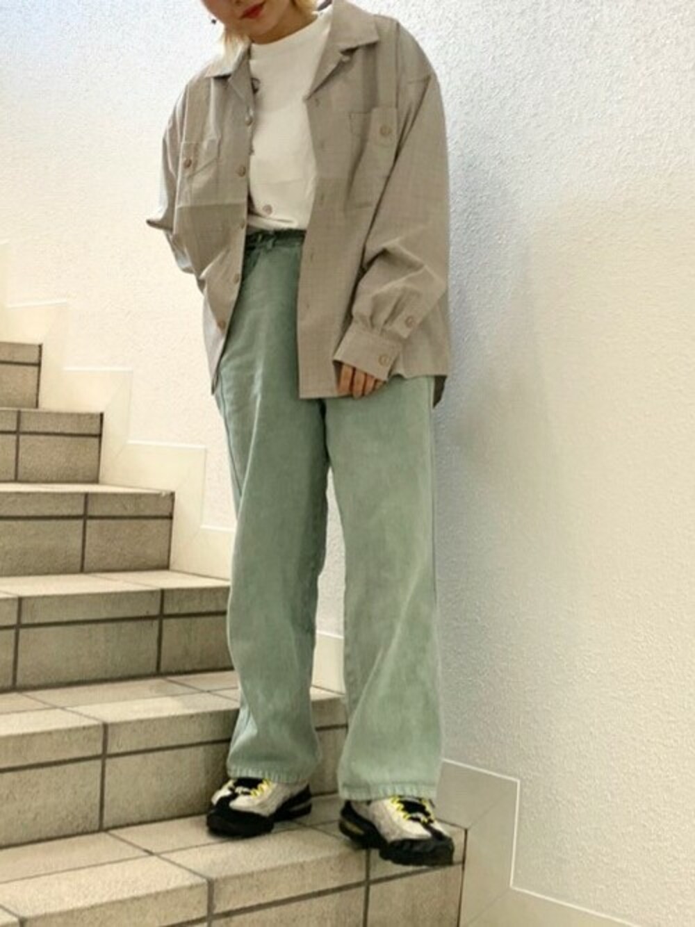 メンズライクコーデ〜!! 爽やかな秋感の出るメンズライクコーデにしました(^ ^) このシャツかなり万能なので使えるアイテム!! 微妙な温度感な今なので羽織りでも1枚でも着られるシャツを持っておくと便利(^.^) 開襟と普通の襟になるのもポイント!雰囲気変わりますよ!! チェックも小さめなので総柄刺繍のロンTとでも合います!! パンツも履きすぎなくらい履いてるボーイズデニム!カラーパンツはアクセントになるしお洒落感も増します(^_^) ストレートな形なのでオーバーサイズのトップスともバランス取れるのでいいですよ(^ ^) ハンチングのカンゴールでよりメンズ意識!