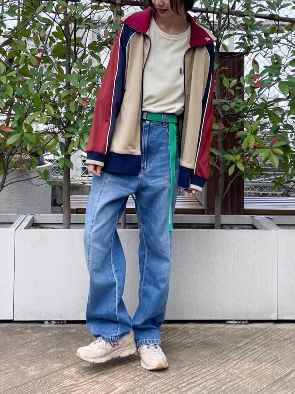 ︎︎︎︎☑︎羽織りで着ているのは配色がレトロカラーのジャージ! ダブルジップなので下を少し開けてオシャレに着こなすこともできます(^^) ゆったり着れる大きさで、ロンTなどを合わせても余裕があります◎ ︎︎︎︎☑︎ボトムスはセンターシームデザインでスタイルアップして見える万能デニム! 着用のフェードはトップスの色合わせがしゆすいのでおすすめです︎︎︎︎︎☺︎ ウエスト部分のボタンでサイズの調節ができます◎