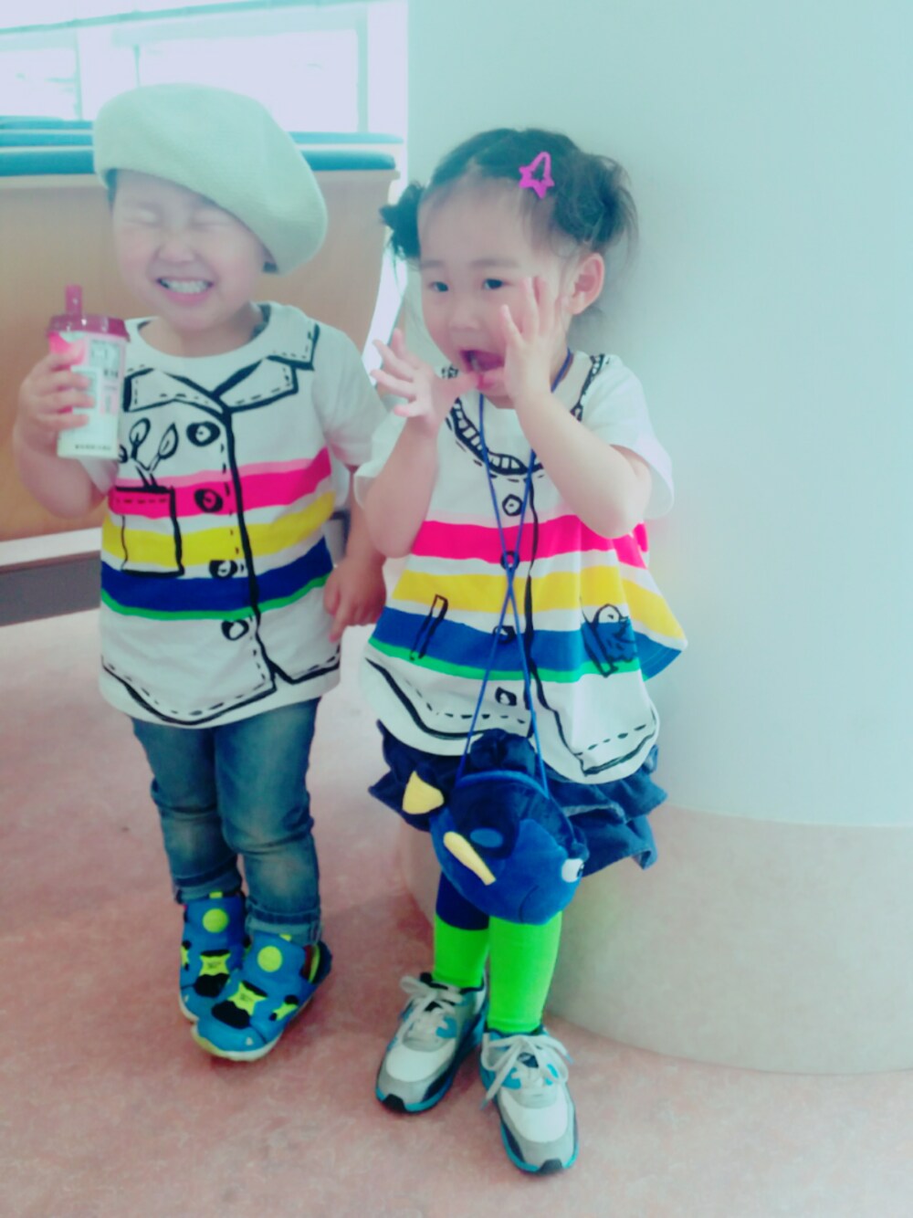 ひさびさひさびさ。 今日も四人お揃いです♪ 女子のはデザイン違うけど❤ 暑くなってクローゼットがすっかり半袖になりましたー☀☀☀☀