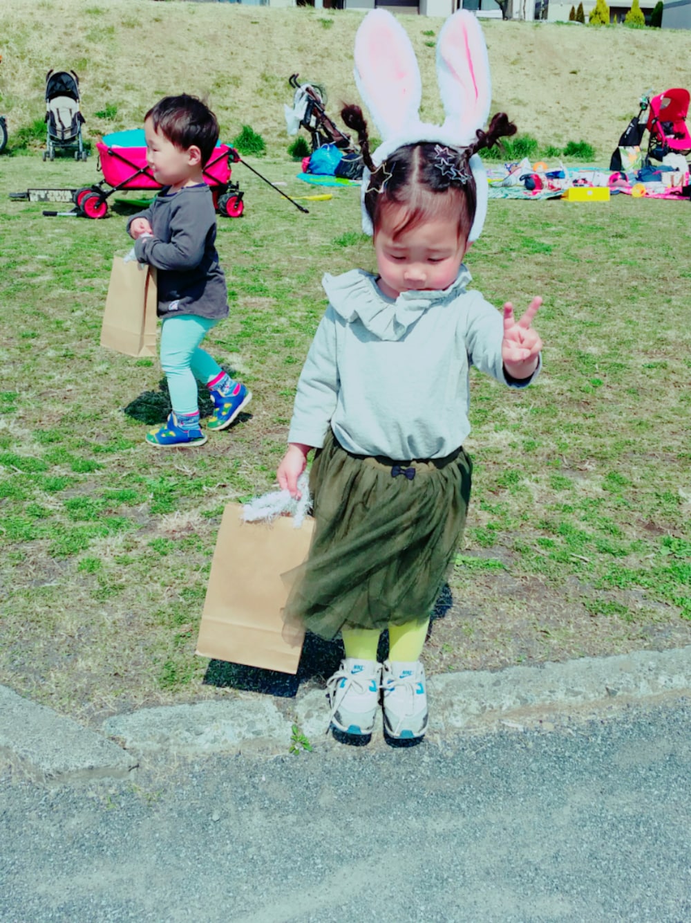 しょんぼりうさぎ(笑) イースターのエッグハントしました~✨ 公園に着いて早々に川にドボンした息子ちゃんはうしろでご機嫌😁😁😁 お揃いだった服はお着替えしちゃいました…💦 娘ちゃんもピンクのバルーンパンツ(コーデに登録したやつ!)だったけど草滑りでまっくろになりお着替え~💦 ハプニング満載だったけど、なんやかんやと楽しそうな二人でした❤❤