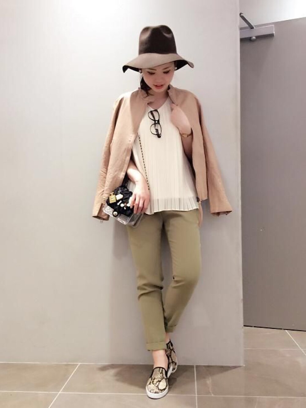 春の新作を使ってコーディネート♡タックパンツはシルエット抜群なので、オールシーズン使えます(^^)