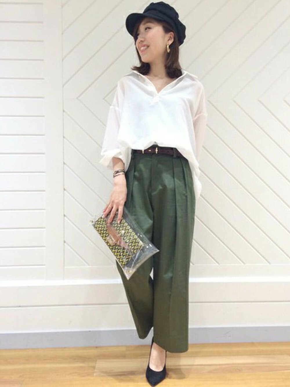 タックワイドパンツをマリンキャップで大人カジュアルに◎