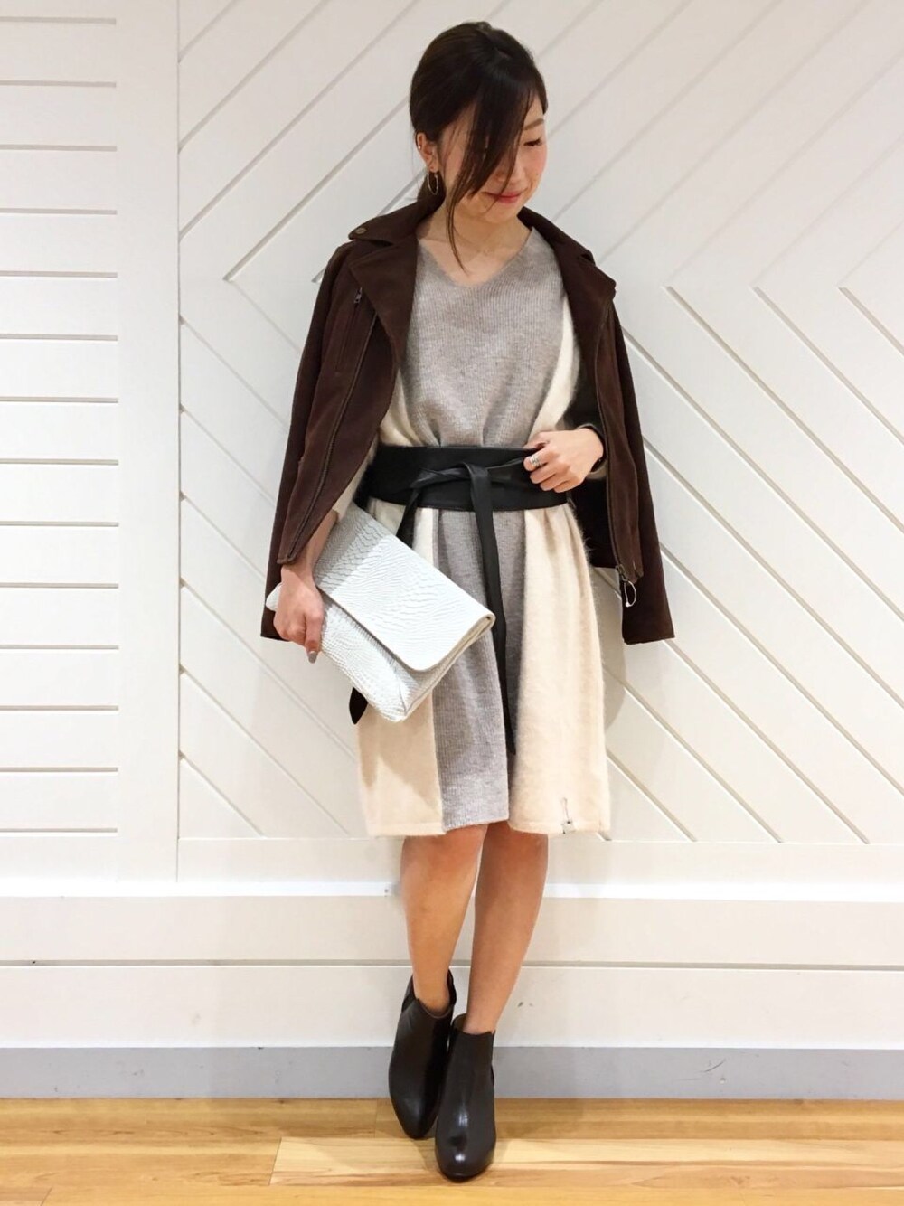 DouDou_STAFFのワンピース「アンゴラ切り替えニットワンピース」を使ったコーディネート