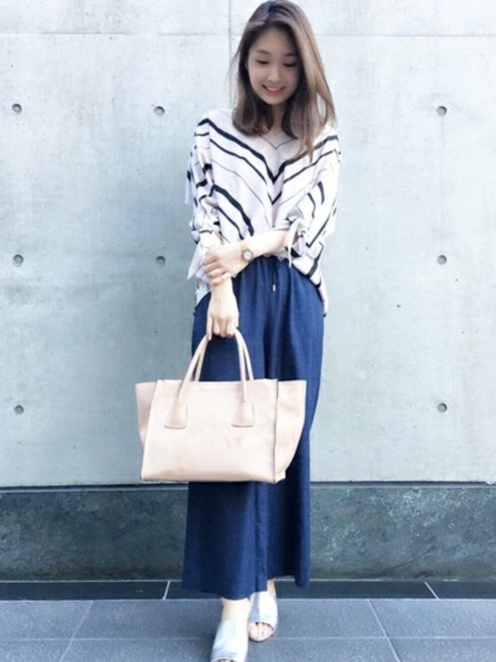 DouDou_STAFFのシャツ/ブラウス「バイヤスストライプブラウス」を使ったコーディネート