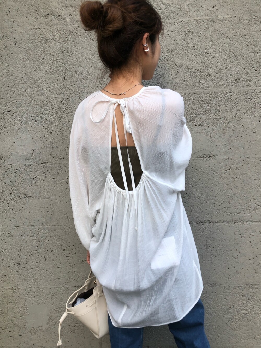 アヤカのシャツ/ブラウス「バックオープンギャザーブラウス」を使ったコーディネート