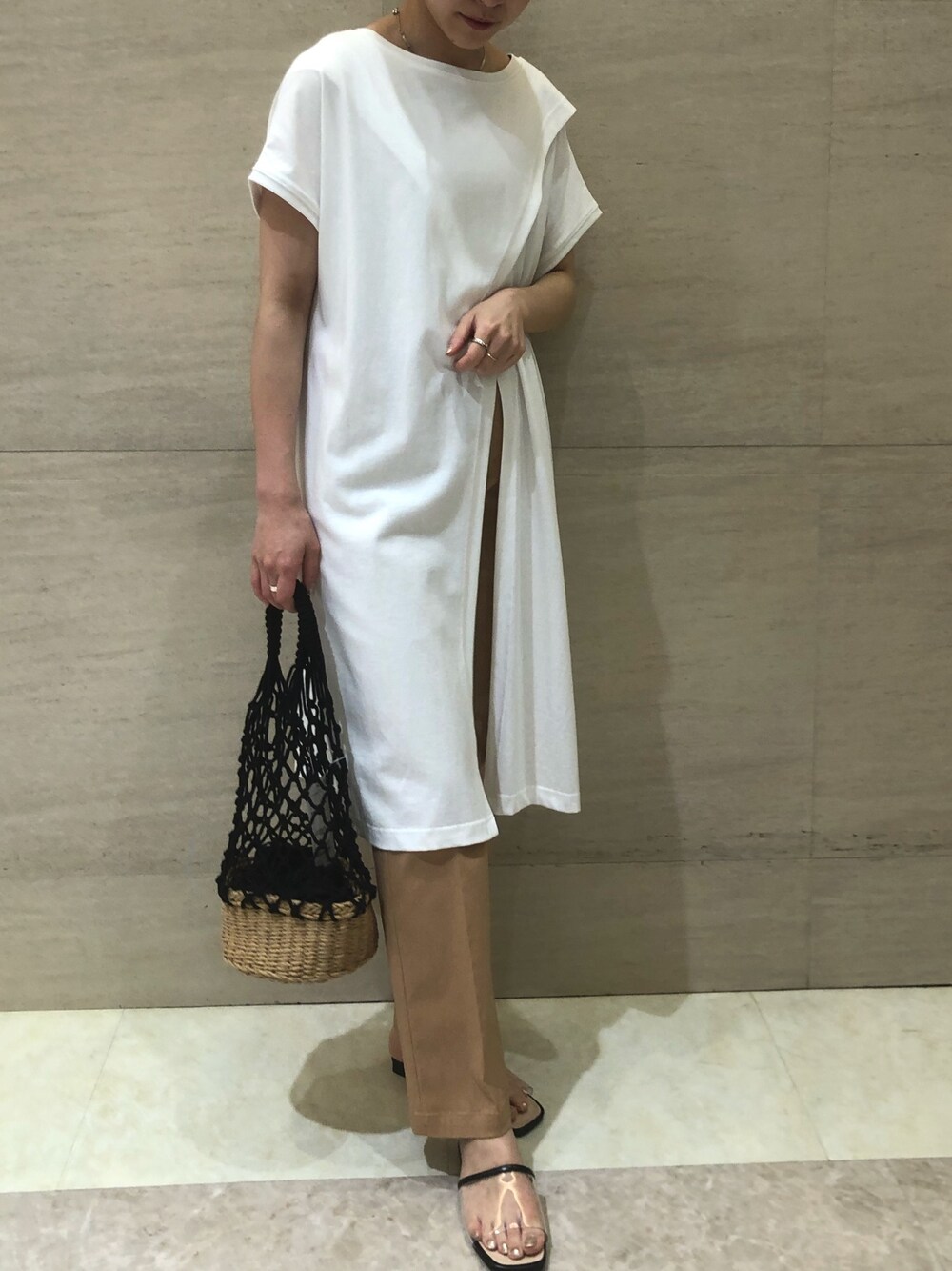 大きくスリットが入ったワンピに 今回はパンツを合わせてみました! シンプルだけど、すこしクセがある コーデ🧡🤍かわいい!