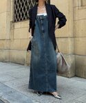 doudouchinami(DouDou)のワンピース「裾フリンジデニムジャンスカ」を使ったコーディネート