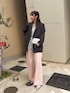 インフルエンサー企画ジャケット! とっても軽くて肌触りも良くシルエットもとっても綺麗です☺️ こなれ感たっぷり大人に着こなせます✨ 大人気ヘムレースロンteeと春らしくデニムワイドイージーパンツのピンクと合わせてみました💞 ぜひ参考にしていただけると嬉しいです☺︎