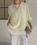 doudouchinami(DouDou)のシャツ/ブラウス「袖ニット切替ドロストジョーゼットブラウス」を使ったコーディネート