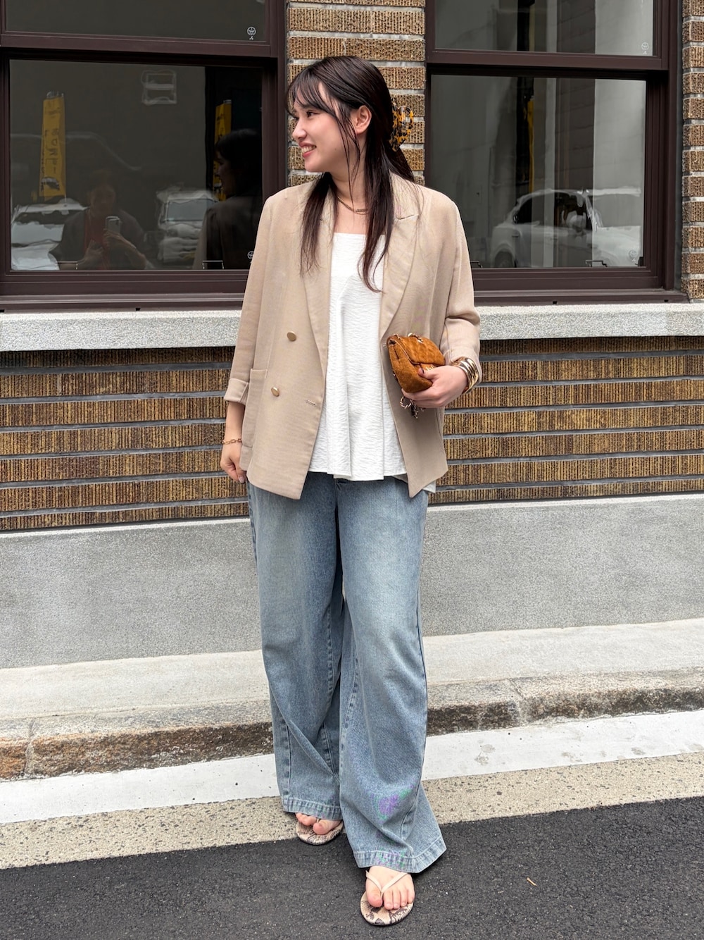インフルエンサー企画reiさんキャミソールにデニムを合わせた大人カジュアルコーデ✨ ジャケットは-3キロ見えしてくれるメッシュジャケット とっても涼しくシワにもなりにくいのでママの必需品です♪ デニムパンツはオールゴムなのでとっても楽ちん! ぜひ参考にしていただけると嬉しいです☺︎