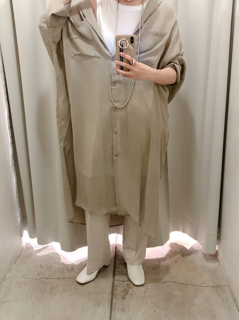 上質なキュプラ素材の開襟シャツが可愛い🧡🧡 Instagram → han___e.84