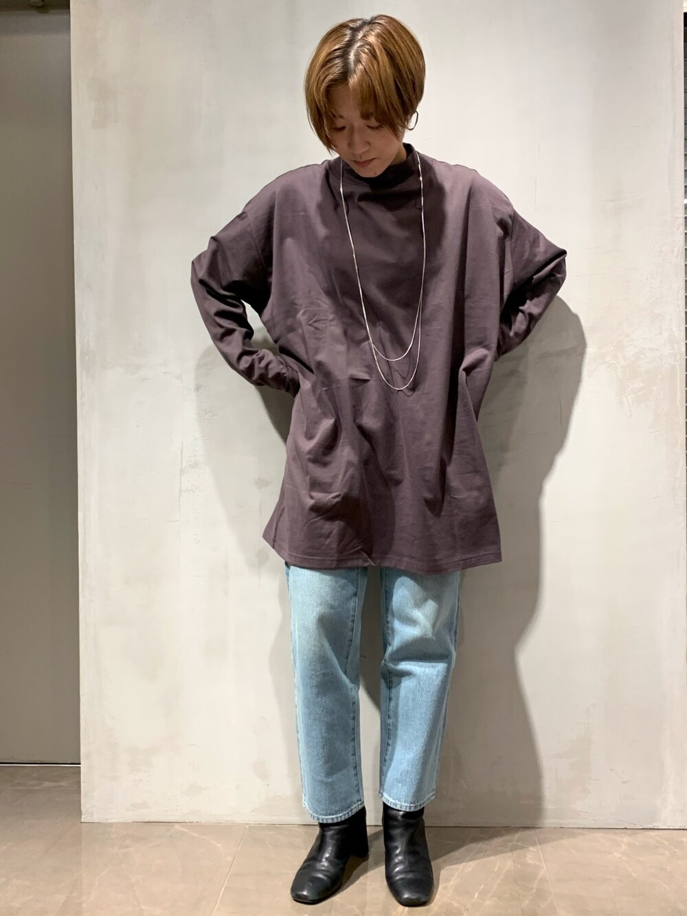 hidemi(DouDouアミュプラザ博多店)のTシャツ/カットソー「モックネックチュニックT」を使ったコーディネート