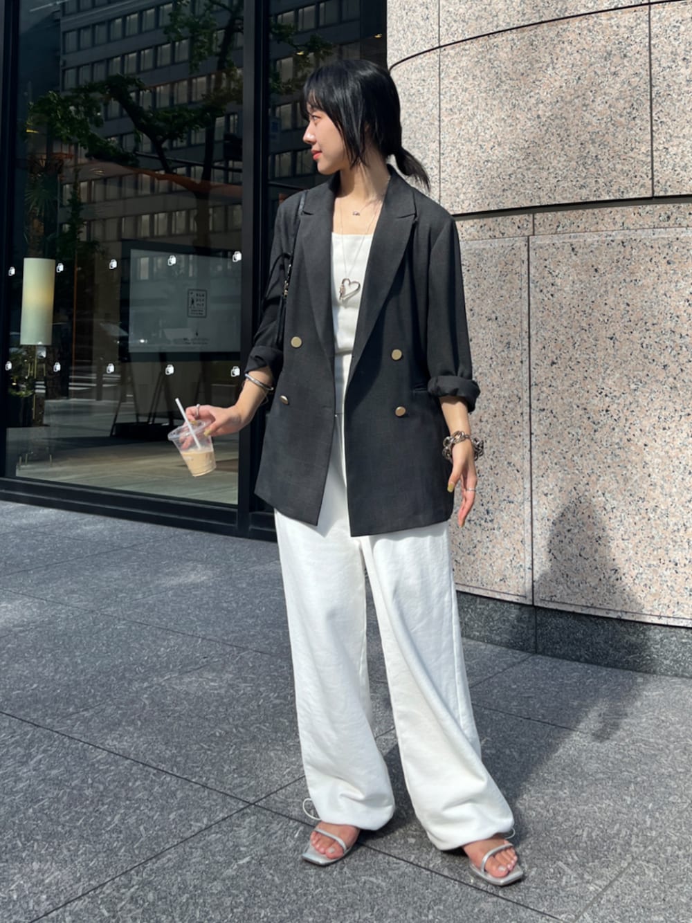 ジャケット+スウェットの普段からよくする、わたしてき定番コーデです♡ ジャケットもすこしオーバーなサイズ感でスウェットもゆるっとなので、靴はすっきりとしたシューズであわせてみました^^ はやく秋になってこのコーデがしたいな~...と妄想しております。 パンツのサイズは、166cmで38を着用しております!°˖
