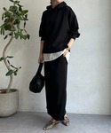 WEB限定の大人気なセットアップを着ました!🖤ダンボール素材で、とってもとっても楽々な着心地はもちろんなんですけど、トップスを一枚きるだけでレイヤードしているような裾のデザインがおしゃれ見えでおすすめです!!(๑>◡<๑) スカートも楽々なので、たくさん動く日にもおすすめのセットアップですよ! 単品使いもできるので着こなしの幅がかなり広がります◎