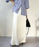 オールホワイトコーデに...♡ ダメージデニムシャツに新色が登場するので、着てみました!余裕感のあるサイズがきやすくて、インナーも合わせられるので早い時期から取り入れられそうです💭 合わせたスカートは新しいサテンスカートです! 横から見たら薄っぺらく見えるdoudouでは人気のマーメイドシルエット🩵