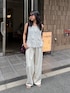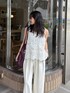 オールホワイトコーデです ^ ^ 人気の前後2wayのレースタンクを始めて着てみました♡ レースなのに甘くならないのがうれしい1枚です!しかも涼しい。。。。。真夏に最適です! 合わせたパンツもとってもお気に入りです♡ 38のサイズを着用しました! 長さは、ぺたんこのビーサンであわせて床につくかつかないかくらいだったので、高身長さんにおすすめです♩ 細見えでしたよ♡