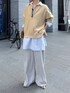OKOCHIさんスウェットの新色ベージュを着てみました! 結構イエロー掛かった薄目のベージュなので合わせやすさと少しはるっぽさがプラスされます💛 スウェット自体ダボダボではないけど、ある程度のゆとり感があるので インナー合わせも自由自在です♩