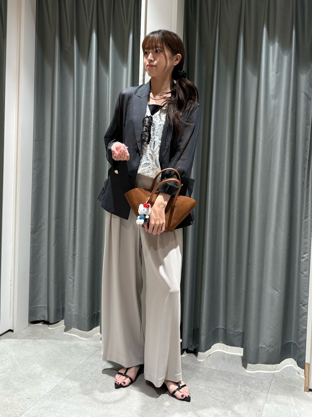 インナーにレースタンクを合わせて シンプルすぎない華やかなコーデに! ジャケットを脱いでも涼しく着ていただけます♩