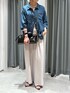 デニムもスラックスなどキレイめアイテムと合わせると 一気にキレイめにアップグレードします⭐️ シアー感があるので デニムだとカジュアルになりすぎる・・って方に!