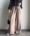 秋らしいスウェード素材のセットアップコーデ💕 着た感じが思ったより重たくなくて 軽くて快適に着やすいです✨ ウエストのリボンがポイントになって可愛い…!