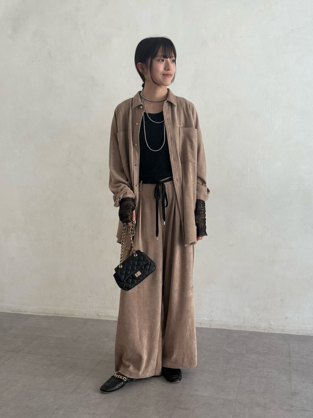 karin(DOUDOU天王寺MIO)のシャツ/ブラウス「スウェードシャツ」を使ったコーディネート