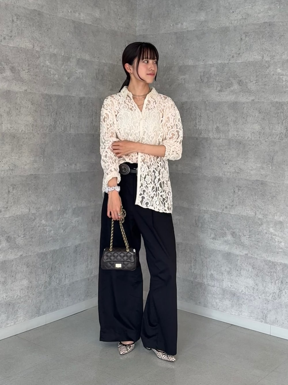 karin(DOUDOU天王寺MIO)のシャツ/ブラウス「フロッキーレースシャツ」を使ったコーディネート