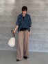 秋らしいスウェードパンツを合わせて 人気のシャツも秋めいた印象にしてみました🍂 パンツは165cmでTMサイズを着用しています!
