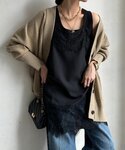 レースキャミをレイヤードして カジュアルになりがちなスウェットコーデも 上品に様変わりします・・🖤🖤