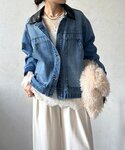 karin(DOUDOU天王寺MIO)のその他アウター「【襟の取り外しが可能!】レザーカラーデニムジャケット」を使ったコーディネート