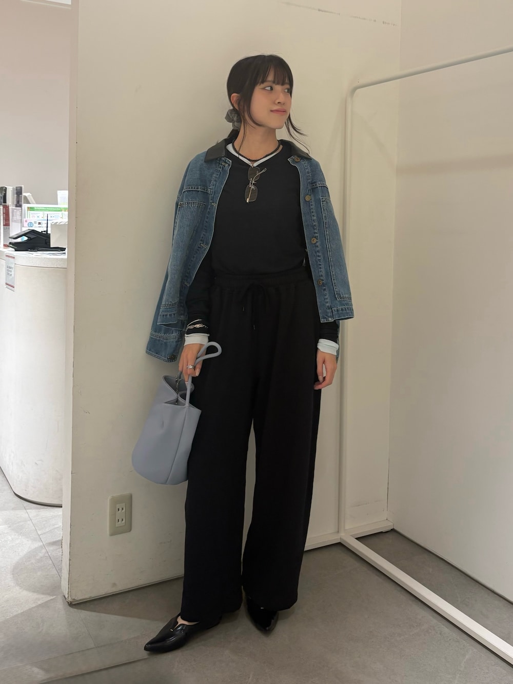 ブラック×ブルーコーデ🩵 パンツは38サイズを着用しています!