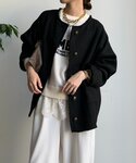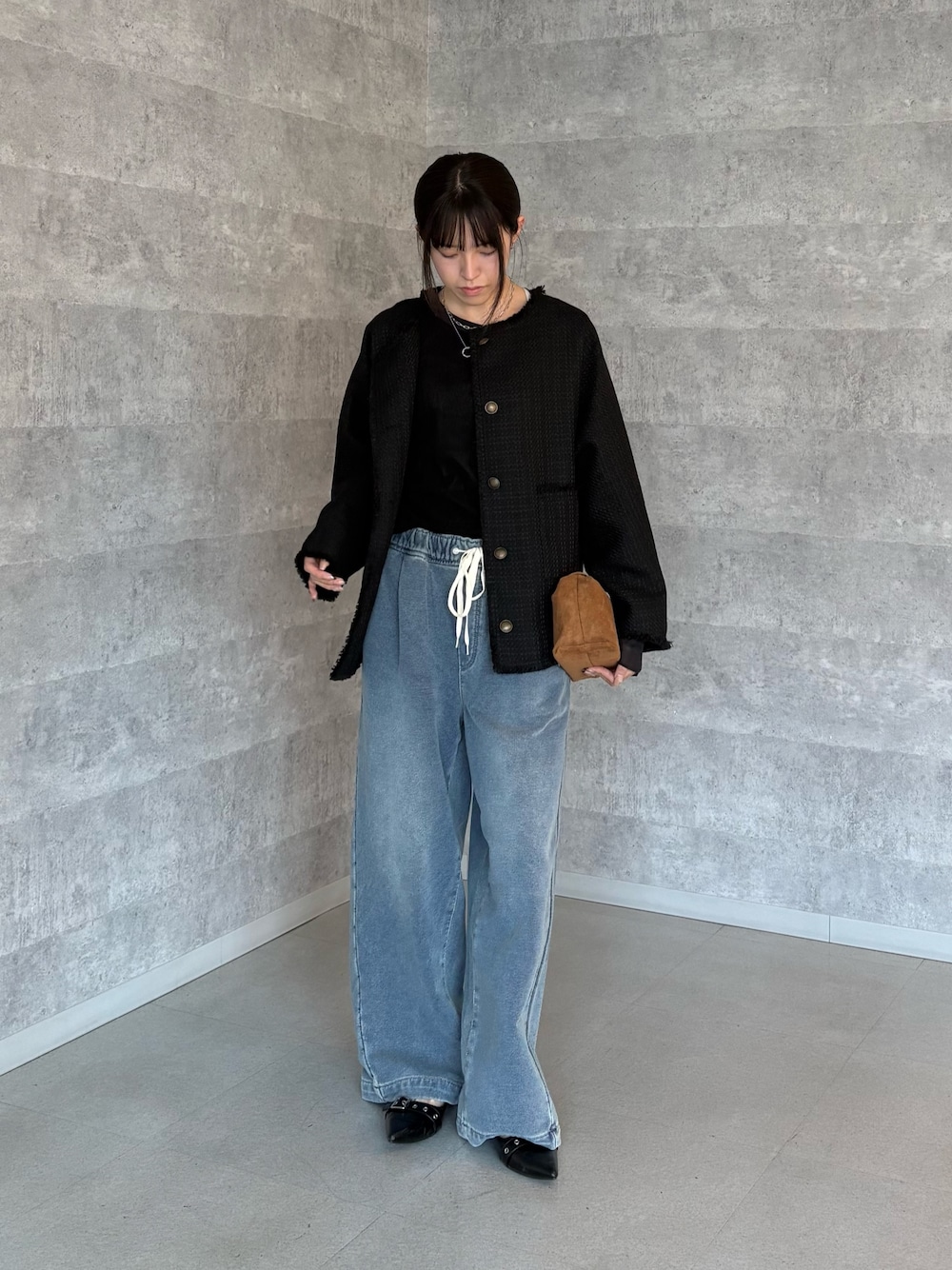 ゆったりとしたサイズ感のツイードジャケットは シーンに合わせて着まわせて万能です・・! デニムを合わせてカジュアルダウンさせると 一気におしゃれに見えます✨ パンツは38サイズを着用しています!