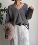 karin(DOUDOU天王寺MIO)のニット/セーター「ファーウール深Vプルオーバー」を使ったコーディネート