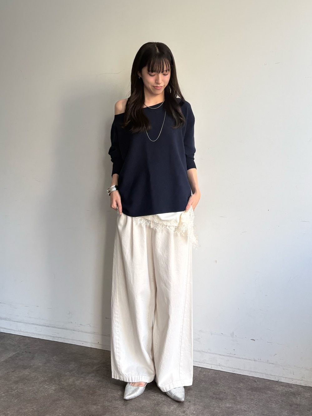 karin(DOUDOU天王寺MIO)のニット/セーター「ボートネックプルオーバー」を使ったコーディネート