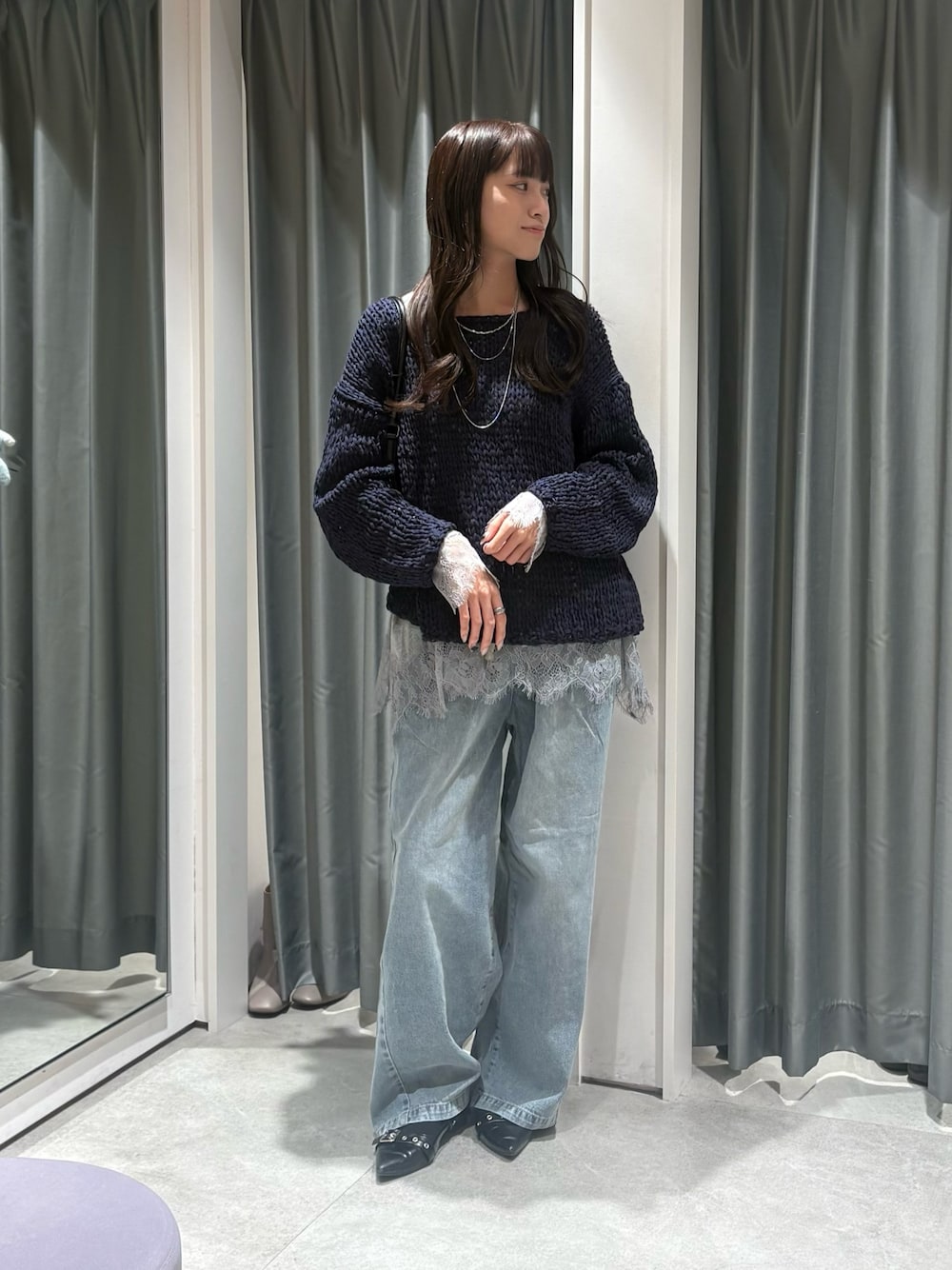 春ニットからレースチラ見せで、 一気にトレンド感upします🍀 カットソー生地のインナーは、 今の時期防寒の重ね着としても使えて便利◎ パンツは38サイズを着用しています。