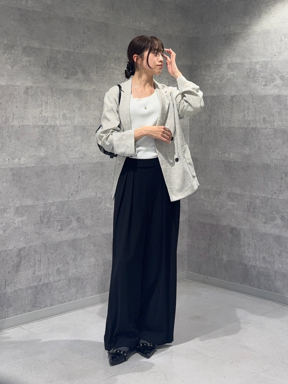karin(DOUDOU天王寺MIO)のテーラードジャケット「シアーツイードダブルジャケット」を使ったコーディネート
